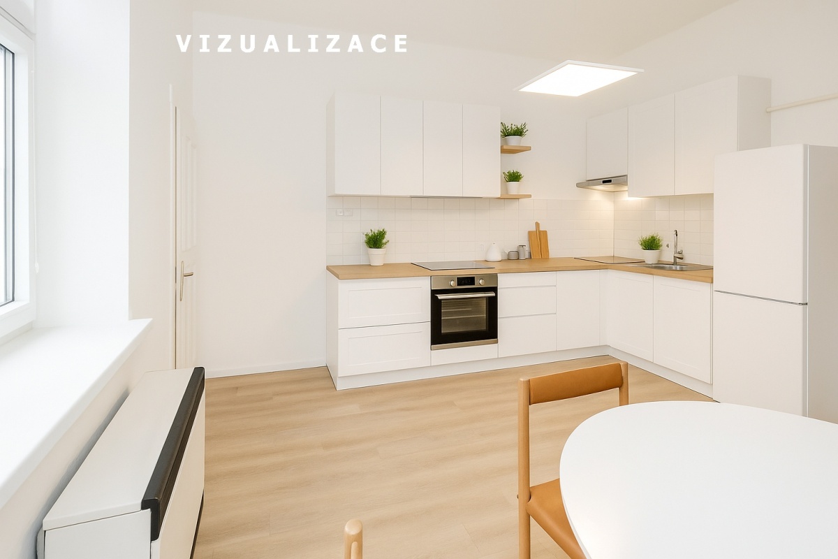 V galerii najdete i vizualizaci jak by mohly vypadat varianty bytu po rekonstrukci 1+1 nebo 2+kk...