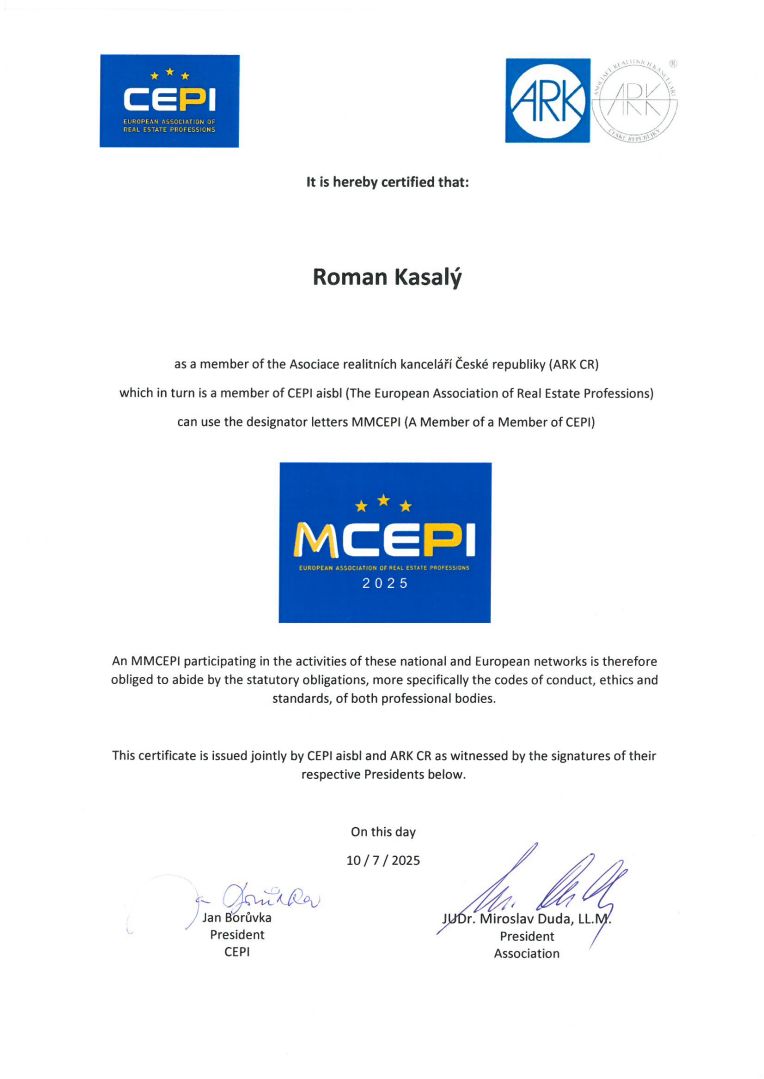 Jsem hrdým držitelem titulu certifikovaného makléře experta profesionála, díky neustálému vzdělávání a profesnímu růstu, dokončeném úspěšným složením státní zkoušky v roce 2020. Novinky však přichází stále a tak se dobrý makléř školí celý život!